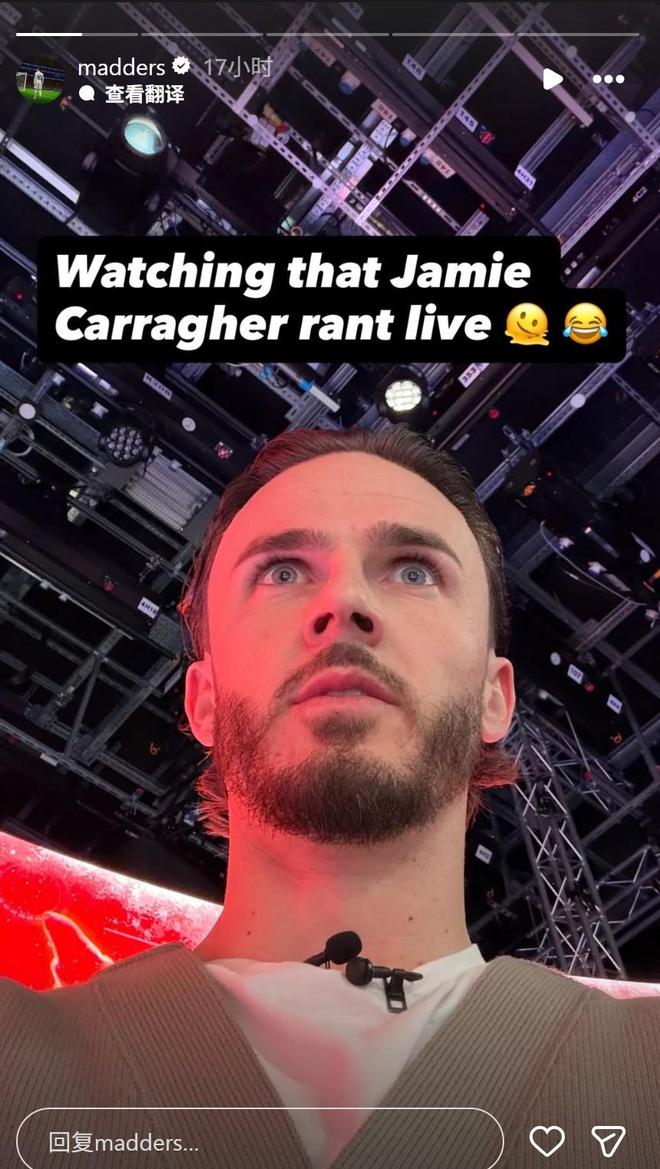 在《天空体育》节目中,利物浦传奇、评论员卡拉格炮轰萨拉赫长达8分钟,他直言萨拉赫的行为是一种耻辱,而且认为萨拉赫在混采区停下来接受采访是他和经纪人一起精心安排的,在一旁的麦迪逊目睹了全过程,他在个人社媒晒出了自己的震惊脸。