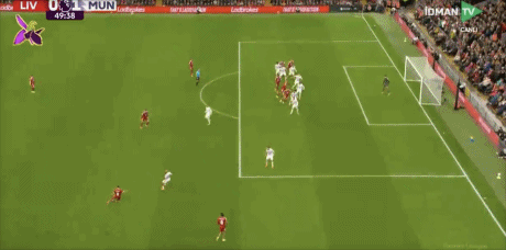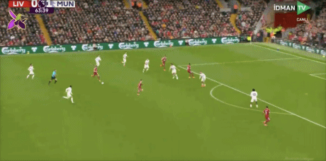 第50分钟,萨拉赫传中,加克波禁区左侧停球,右脚爆射击中立柱弹出!