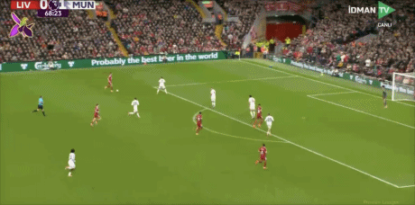 第65分钟,科尔克兹传中,萨拉赫禁区右侧无人盯防,左脚抽射竟然打偏。